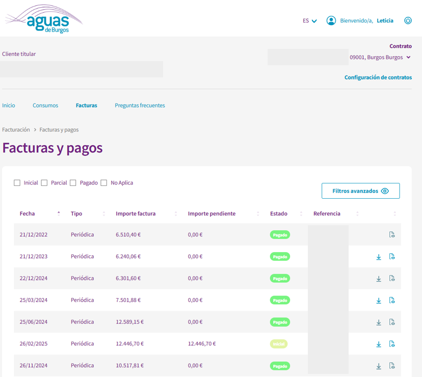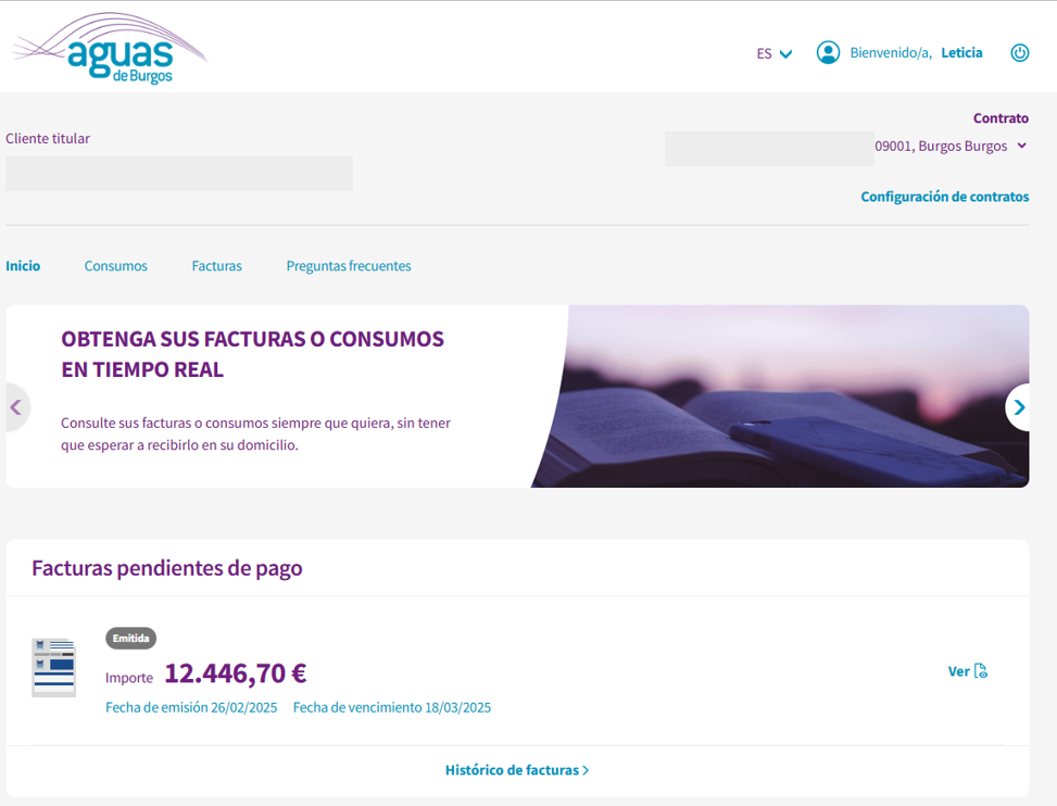 Al acceder a la Oficina Virtual usted podrá ver aquellas facturas pendientes de pago para el contrato que tenga seleccionado.